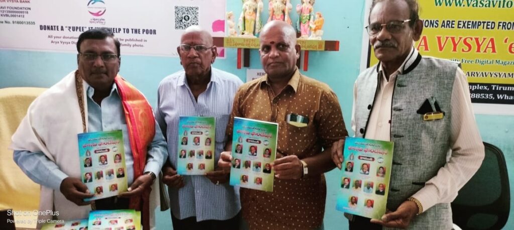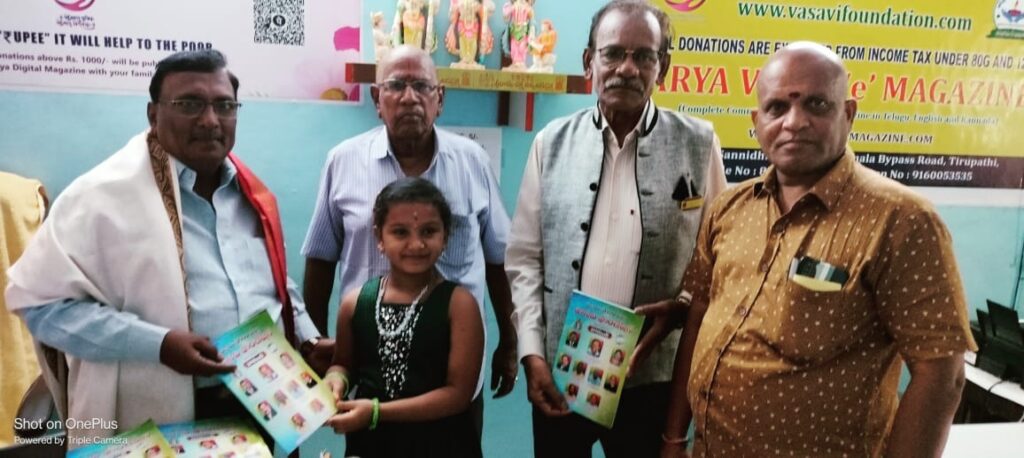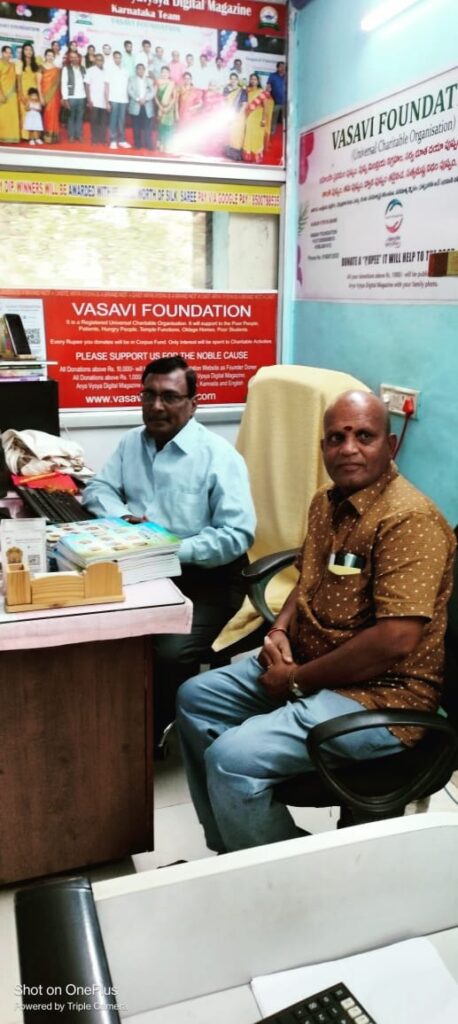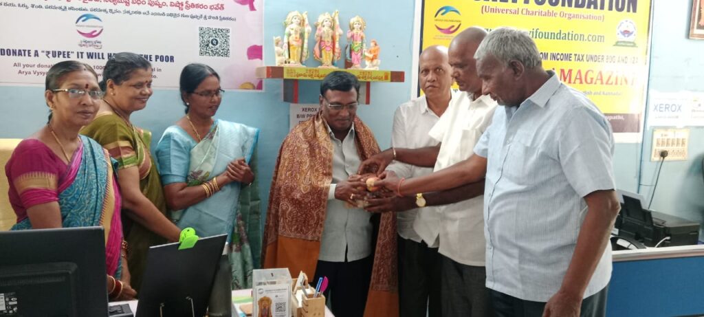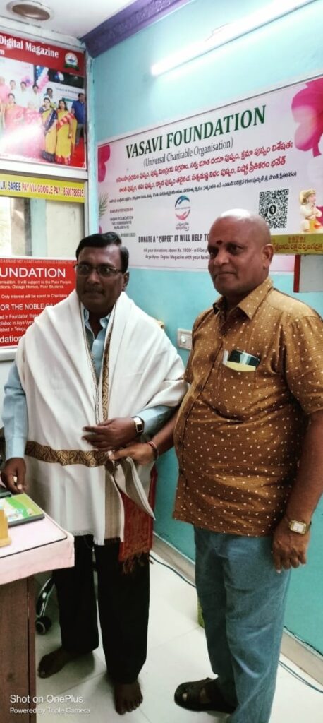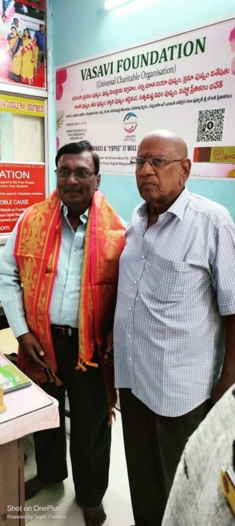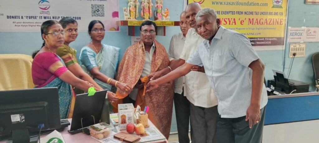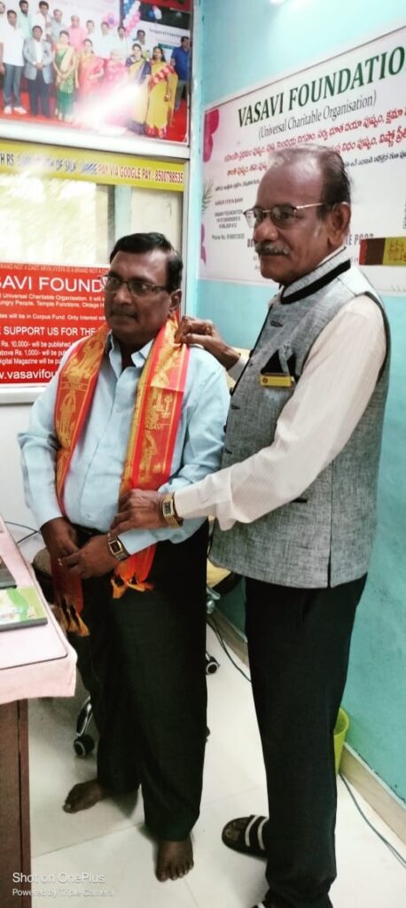 Vasavi Foundation, Vijanagaram District Team members visited our office and honoured Vasavi Foundation Founder President Sri D.V.Subbarao in Tirupathi.