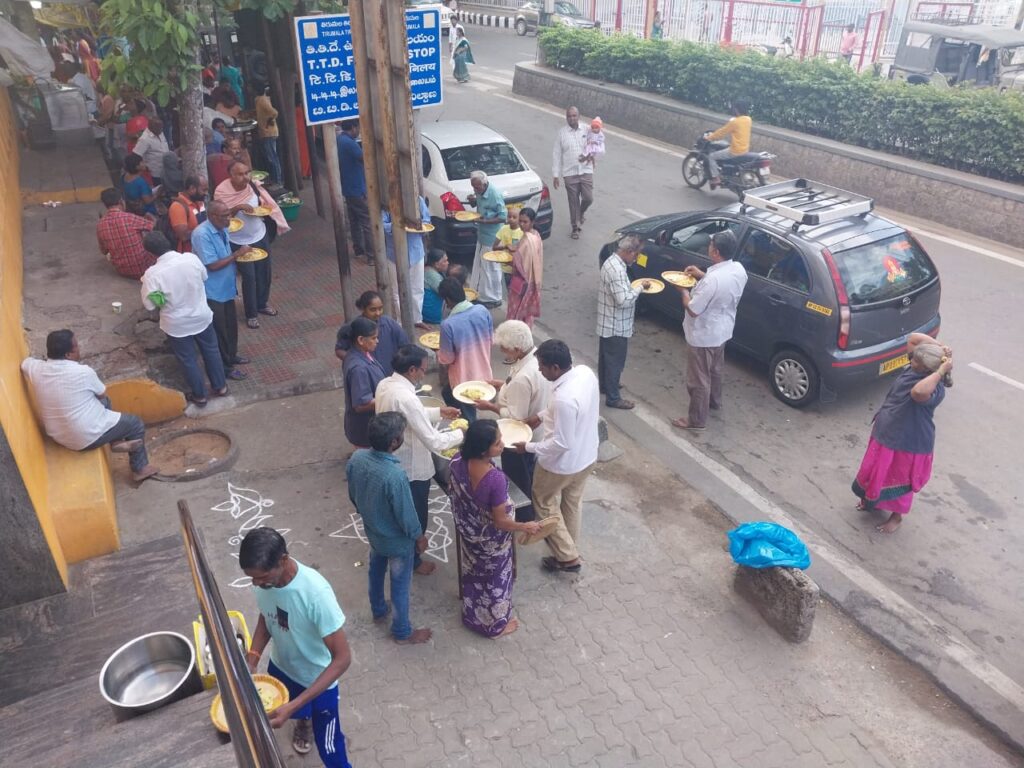 Food Offering to the pilgrims public by Sri Kakinada Sriniva on behalf of Sripada Raja Matam, Tirumala today i.e., 5-8-2023 on the occassion of construction of Rest House near Gogargam dam, Tirumala.