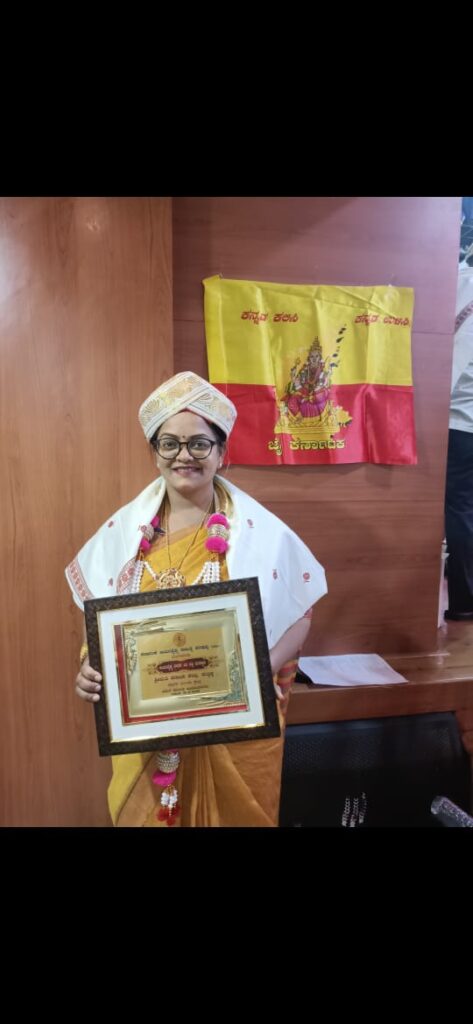 Proud to be honoured by Karnataka Arya Vysya Sahithya Parishath as a “ಆರ್ಯವೈಶ್ಯ ಸಾಧಕ ಸಿರಿ ದತ್ತಿ ಪುರಸ್ಕಾರ” as a “ಸಾಧಕ ಮಹಿಳೆ” for 39 years social service.