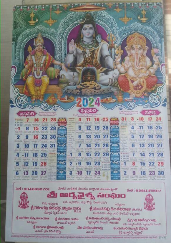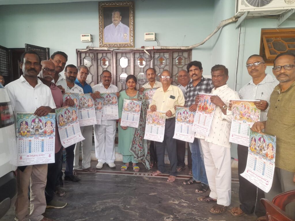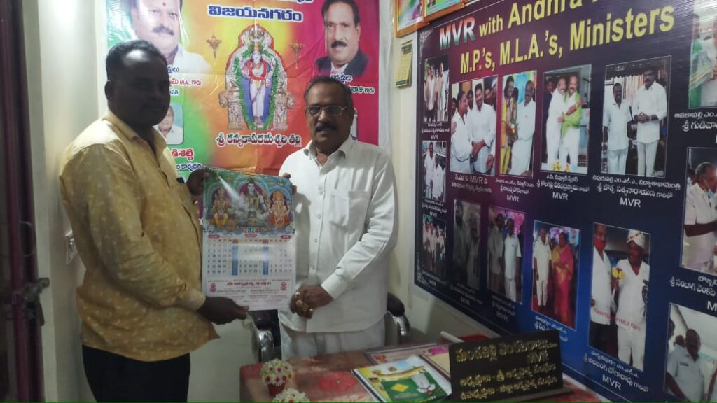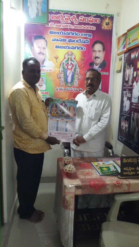 విజయనగరం జిల్లా వాసవి ఫౌండేషన్ మరియు వీటి అగ్రహారం ఆర్యవైశ్య సంఘం అధ్యక్షులు మండవిల్లి వెంకటరాజు M. V. R గారి ఆధ్వర్యంలో నూతన సంవత్సరం క్యాలెండర్స్ వీ.టి .అగ్రహారం ఆర్యవైశ్య సంఘం క్యాలెండర్స్ విజయనగరం జిల్లా వాసవి ఫౌండేషన్ క్యాలెండర్స్ విజయనగరం ఎమ్మెల్యే డిప్యూటీ స్పీకర్ కోలగట్ల వీరభద్ర స్వామి గారి చేతుల మీదుగా ఆవిష్కరణ జరిగినది ఈ కార్యక్రమమునకు వీ.టి .అగ్రహారం ఆర్యవైశ్య సంఘం సంఘ సభ్యులు కార్యవర్గ సభ్యులు మరియు విజయనగరం జిల్లా వాసవి ఫౌండేషన్ కార్యవర్గ సభ్యులు… నాగోలు సత్యనారాయణ .కుసుమంచి నర్సింగరావు. ఆనుమాన్ శెట్టి శ్రీనివాసరావు. నేతి నరసింహ రావు. గ్రంధి కోటేశ్వరరావు. కట్టమూరి మధు. కలగర్ల అప్పలరాజు. పువ్వాడ శ్రీనివాసు. మండవిల్లి సత్యనారాయణ. కుసుమంచి తిరుపతిరావు ముచ్చర్ల రామారావు. తవ్వ మోహన్ రావు. కట్టమూరి రత్నారావు. ముచ్చర్ల కృష్ణారావు . తదితరులు పాల్గొన్నారు వారందరికీ ప్రత్యేక ధన్యవాదములు తెలిపిన అధ్యక్షులు మండవిల్లి వెంకట రాజు
