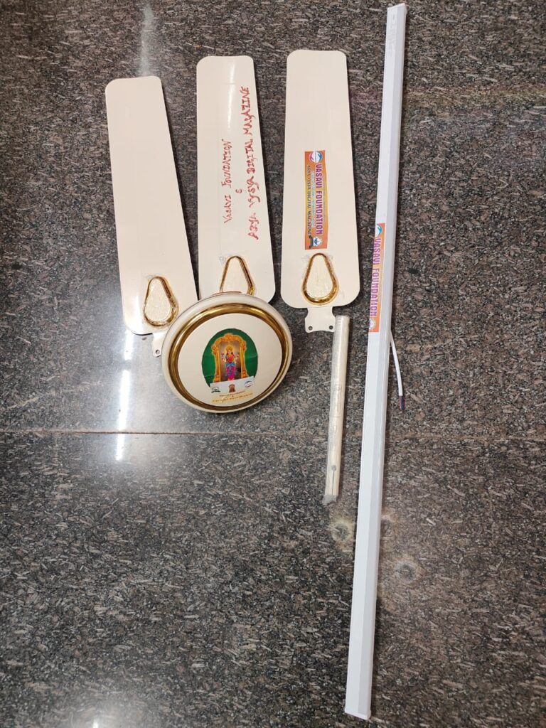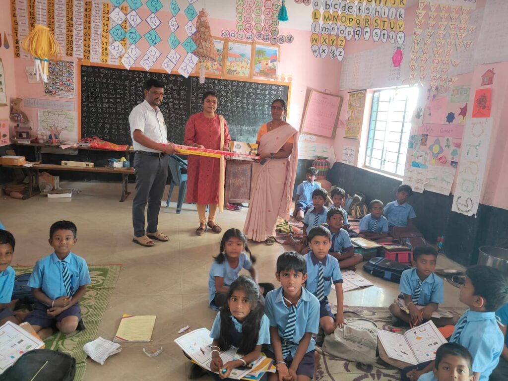 Vasavi Foundation, Karnataka – Smt. Swetha Ganjam, Global Secretary – Distribution of mats, fans and tube lights in Govt. School, Bagepalli, Karnataka.