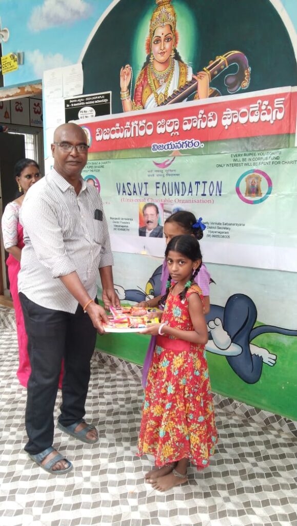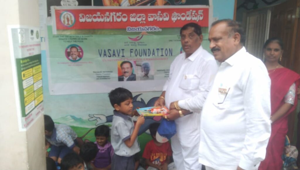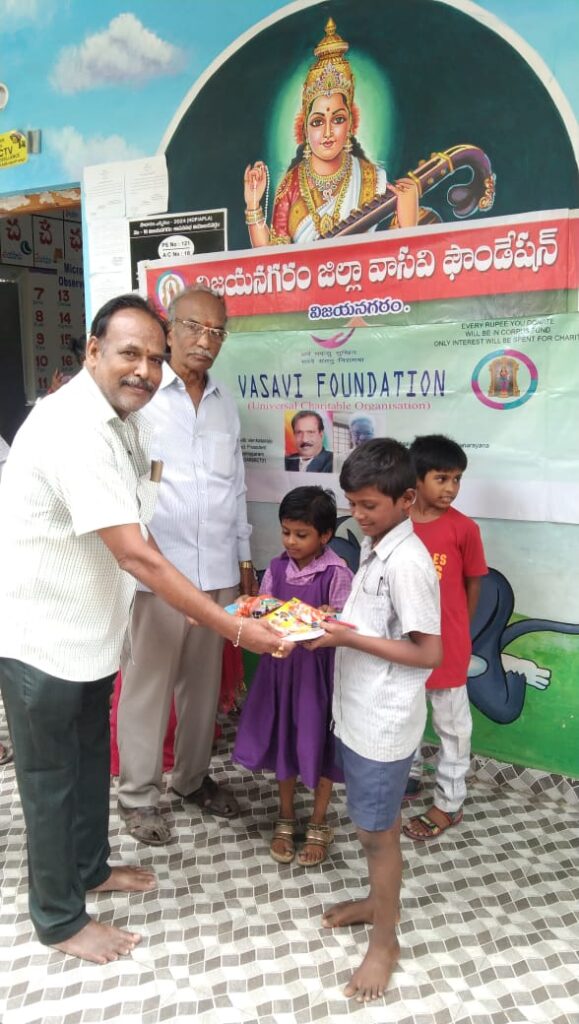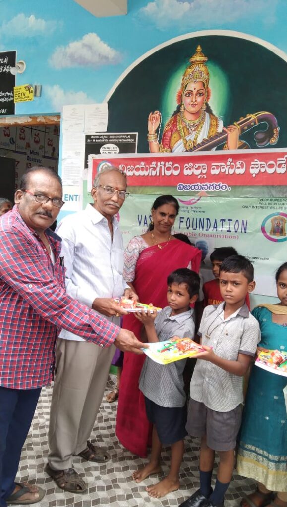 Andhra Vasavi Foundation – Vizianagaram Dist. July 31, 2024September 29, 2024 Post Views: 343 Team members of Vasavi Foundation, Vizianagaram district, Andhra Pradesh, distributed note books to the school children.