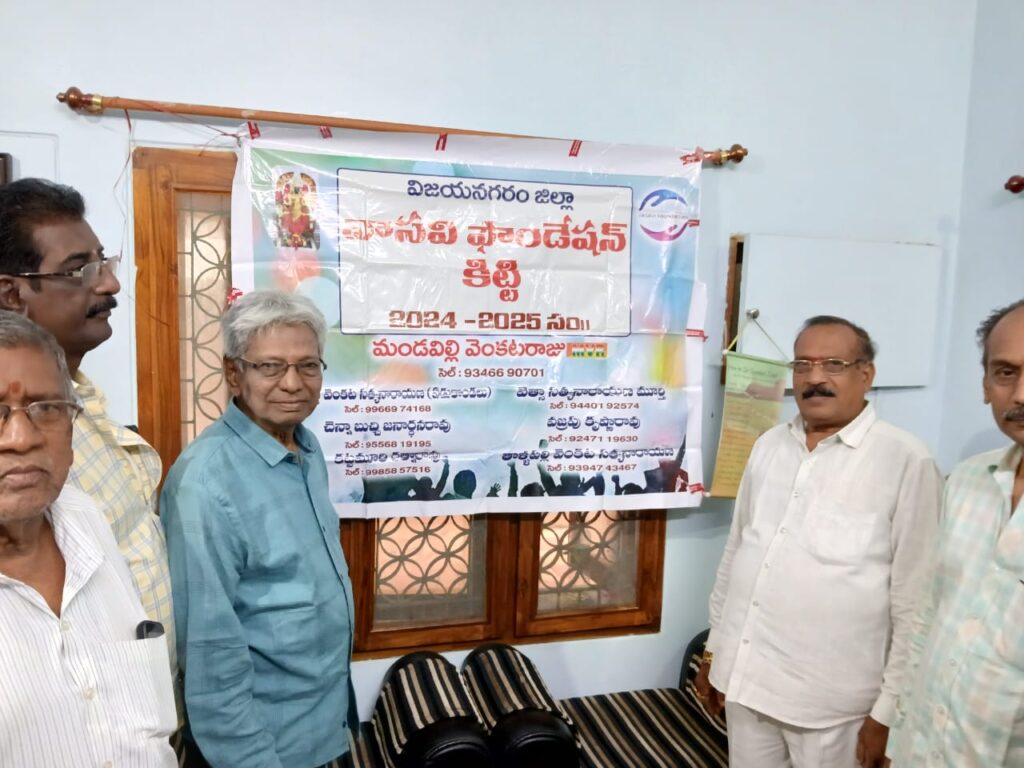 విజయనగరం జిల్లా వాసవి ఫౌండేషన్ కిట్టి సభ్యుల సహాయ సహకారాలతో కొత్తపేట స్వర్గధామానికి 25 వేల రూపాయలు విరాళం ఇవ్వడం జరిగినది. వాసవి ఫౌండేషన్ విజయనగరం జిల్లా అధ్యక్షులు మండవల్లి వెంకటరాజు సెక్రటరీ వెంకట సత్యనారాయణ (ఏడుకొండలు) గూడూరు నర్సింగ్ రావు, పులిపాటి వెంకట రామారావు, వజ్రపు కృష్ణారావు శాఖ వెంకటగుప్త శాఖ సుబ్బారావు, మండవల్లి సత్యనారాయణ తాళ్లపల్లి వెంకట సత్యనారాయణ చెన్న బుచ్చి జనార్దన్ రావు తదితరులు పాల్గొన్నారు. ఈ సందర్భంగా వాసవీ ఫౌండేషన్ వ్యవస్థాపక అధ్యక్షులు దేసు వేంకట సుబ్బారావు, తిరుపతి, వ్యవస్థాపక గ్లోబల్ కార్యదర్శి శ్రీమతి శ్వేత గంజాం అభినందనలు తెలియచేసారు.