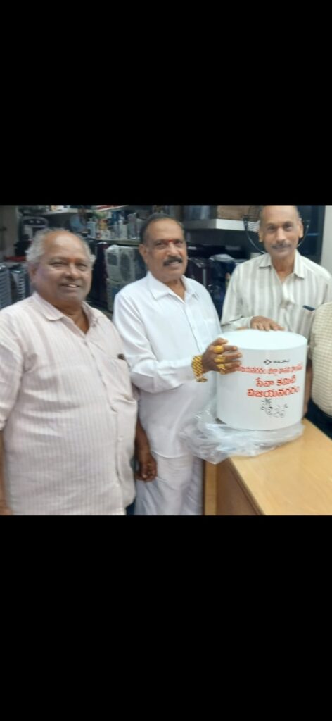 Vasavi Foundation, Vizianagaram District President Sri Venkatraju garu and his team donated some necessaries as a part of two months one activity. Today on 24-12-2024 S.V.S. Old Age Home… Mudidam 10 clock All seva COMITEE Members Attend the program Water…Heater.. Given … Project chairman……. Talapalli Satyanarayana….. co…… Chairman…… Mandavilli Satyanarayana……. Kadimisetty Maleswara Rao…….. TSR. Anjaneyyalu…… Andhariki.. Dhanyavadamulu…