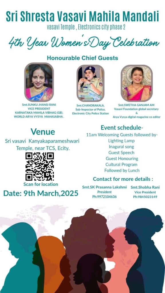 Sri Shresta Vasavi Mahila Mandali from electronic City, Bangalore invited as Chief Guest for the Women’s day event.