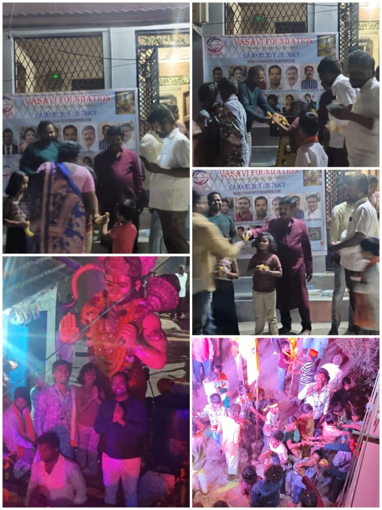 వాసవి ఫౌండేషన్, తెలంగాణ, కామారెడ్డి జిల్లా తరుపున హనుమాన్ జయంతి ఉత్సవాలలో అరటి పండ్లు మరియు మంచి నీళ్లు పంపిణీ చేయడం జరిగింది 🙏