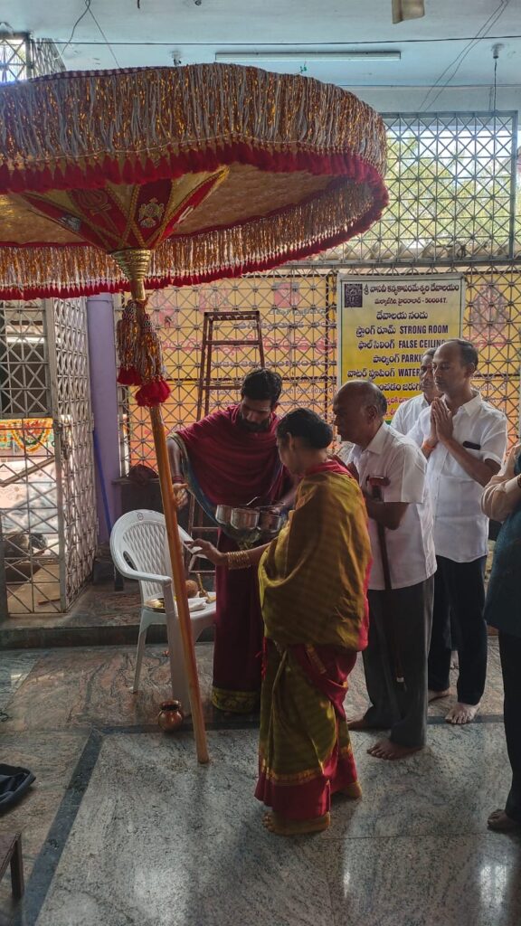 వాసవీ ఫౌండేషన్, తెలంగాణ విభాగం వారి ఆధ్వర్యంలో వ్యవస్థాపక అధ్యక్షులు శ్రీ దేసు వేంకట సుబ్బారావు దంపతుల వారి మనుమరాలు చిరంజీవి హన్విత, మాజేటి వారి పేరుతో స్థానిక మల్కజ్ గిరి వాసవీ ఆలయంలో ఆలయ ఛత్రాన్ని సమర్పించారు. పవిత్రమైన కార్తీక సోమవారం రోజున కోటి బిల్వార్చన మరియు వేదాశీర్వచనాలు మధ్య జరిగిన ఈ కార్యక్రమంలో ఆలయ కమిటీ అధ్యక్షులు శ్రీయుతులు పులవర్తి శ్రీనివాసరావుగారు, అనుటెక్స్ అధినేత శ్రీ పులవర్తి రామకృష్ణారావు గారి దంపతులు, ఆలయ కమిటీ సభ్యులు,తెలంగాణ విభాగం అధ్యక్షులు శ్రీ పవన్ గుప్త గారు,కార్యదర్శి శ్రీ స్వరాజ్ గారు ఈ కార్యక్రమం విజయవంతంగా జరగటానికి సహకరించారు