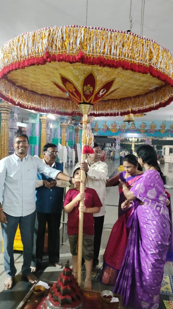 పవిత్రమైన కార్తీక సోమవారం రోజున స్థానిక మారుతీ నగర్, కొత్తపేటలోని వాసవీ కన్యకాపరమేశ్వరీ ఆలయంలో వాసవీ ఫౌండేషన్, తెలంగాణ విభాగం ఆధ్వర్యంలో శ్రీమతి సాహితీ సుమన్ వారి పేరుమీద వారి తల్లిదండ్రులు మరియు వాసవీ ఫౌండేషన్ వ్యవస్థాపక అధ్యక్షులు ఆలయ ఛత్రాన్ని సమర్పించారు. ఈ కార్యక్రమానికి తెలంగాణ విభాగం అధ్యక్షులు శ్రీ పవన్ గుప్త గారు, కార్యదర్శి శ్రీ స్వరాజ్ గారు ఇతర సభ్యులు మిత్రులు శ్రీ జి. సుందరరావు గారి దంపతులు, నూలి నగేష్, పులవర్తి రత్నకుమార్, ఆలయ నిర్వాహకులు పాల్గొన్నారు.