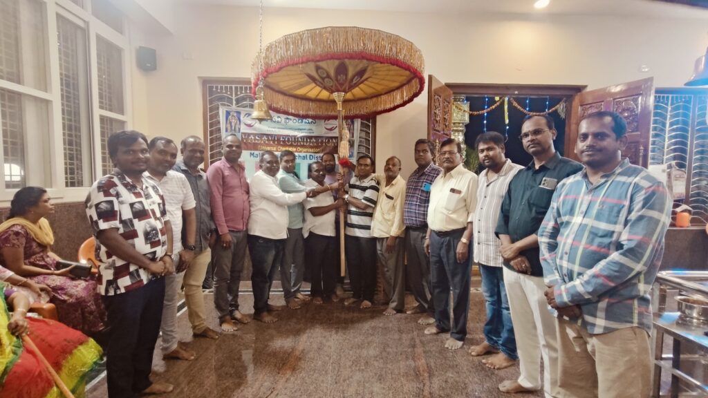 When TTD under the rule of Mahats, Smt. Komalamma w/o. Sri Diwan Bahadur Vijayaraghavulu Chetty from Chintadri pet, Chennai constructed one choultry in Sarojini Devi Road, Tirupathi. She served food to the walking pilgrims and offered flowers to the local temples. On attaining oldage she handed over the choultry to TTD. Then Mahant sanctioned a charity from TTD on request of Komalamma.She asked to conduct Swamy Asthanam once in a year in her premises. Then Mahant sanctioned her wish and every year Lord Venkateswara visited her premises. TTD conducts Asthanam every year Sri Padmavathi Ammavari Chakrasnanam Day in a grand scale. As Komalamma is Vysya Lady and rendered omen service to the Lord Venkatesweara. In memory of Komalamma Vasavi Foundation decided to conduct many acrtivities like Food Offering, Cow Seva, Donation of Temple Umbrellas and honouring of Ancestors family who serverd society.