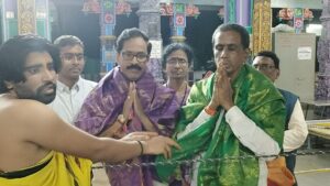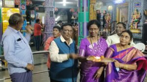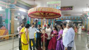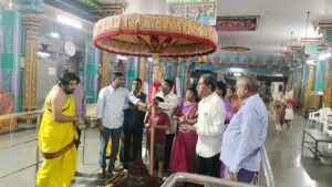 Daughter of D.V. Subbarao founder President and his wife Smt. Rajyalakshmi, Sri Smt. and Sri G Sundar Rao, Mr. Nagesh, TS State President Pawan Guptha, and State Secretary Swaraj and Sri P. Ratnakumar and Temple authorities |  |  |  |  |  |  |
