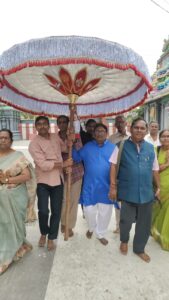 Daughter of D.V. Subbarao founder President and his wife Smt. Rajyalakshmi, Sri Smt. and Sri G Sundar Rao, Mr. Nagesh, TS State President Pawan Guptha, and State Secretary Swaraj and Sri P. Ratnakumar and Temple authorities |  |  |  |  |  |  |